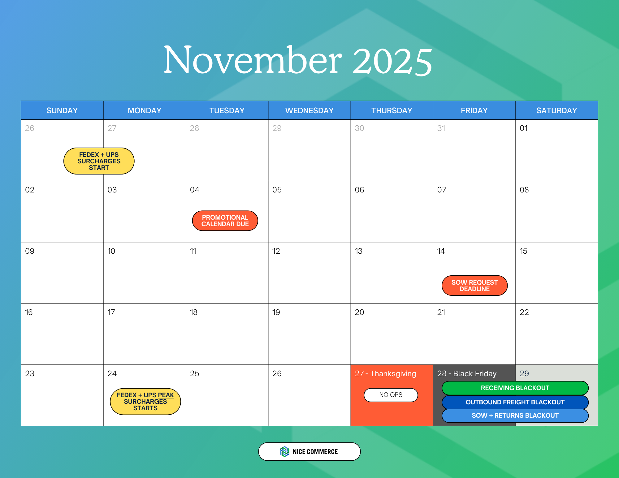 - Outbound Freight Blackout: November 28-December 1